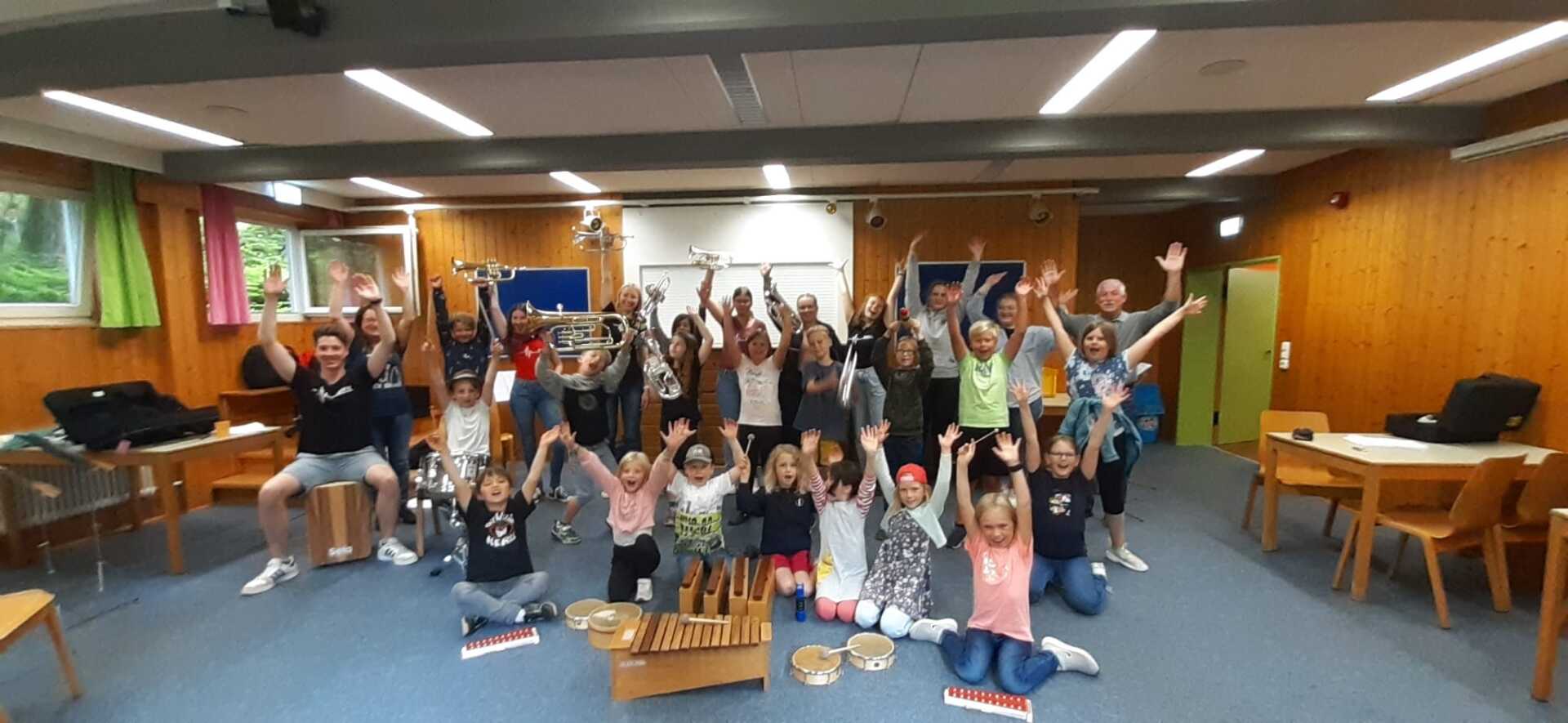 Die 19 Teilnehmende der Blaskapelle, davon 13 Kinder und 6 Teamer trafen sich am Freitagmittag voller Vorfreude, um gemeinsam anzureisen. Vor Ort angekommen, haben sich schnell Freundschaften zu den Kindern der anderen Vereine gebildet.